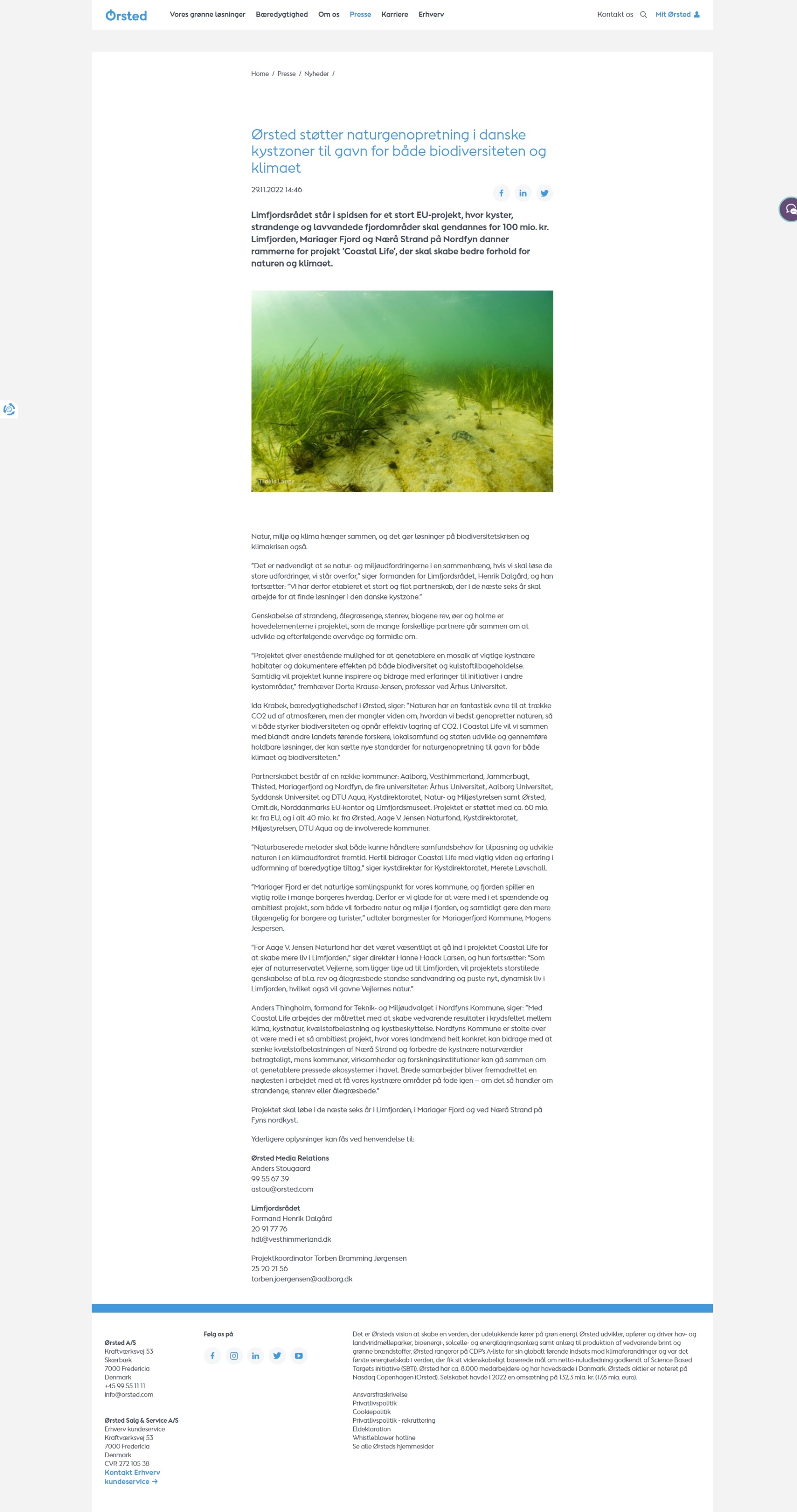 Nyhed fra Ørsted d. 29 november 2022 (https://orsted.dk/presse/nyheder/2022/11/13665212)